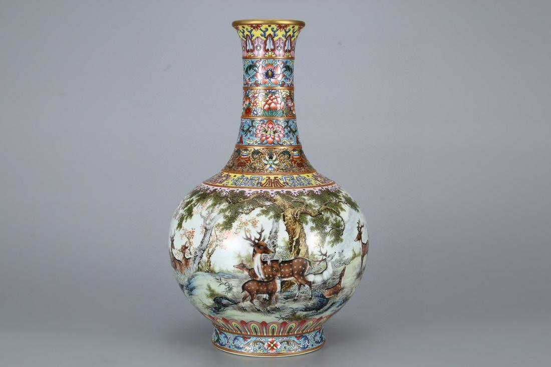A Rare Famille-rose 'Deer' Pattern Vase