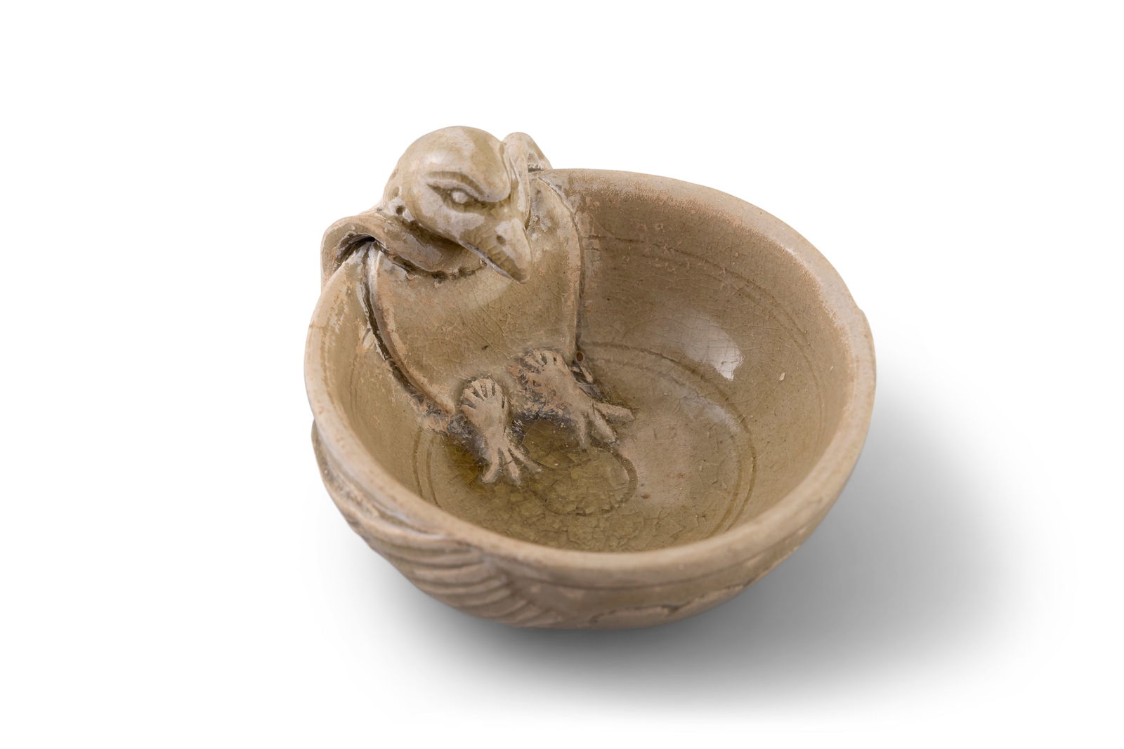 A RARE GREEN GLAZED ‘EAGLE’ CUP 隋 青釉英雄杯