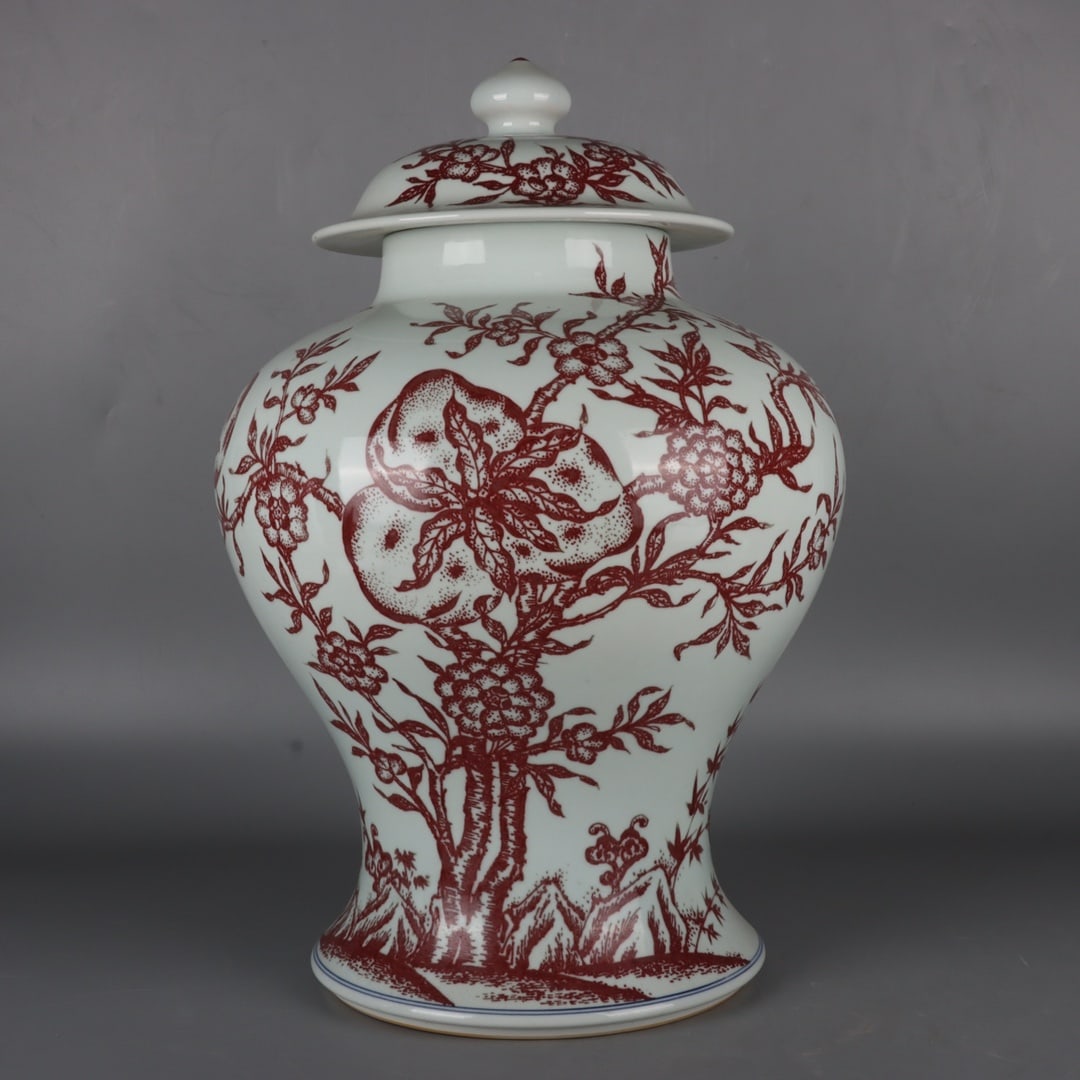 A Rare Underglaze-RedBats and Peach Pattern Jar