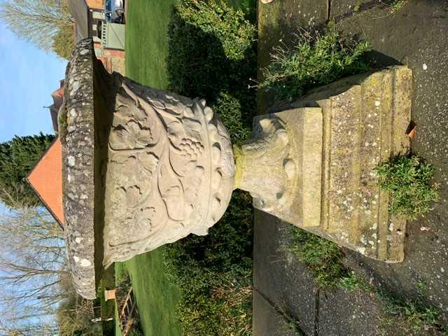 A reconstituted stone urn,