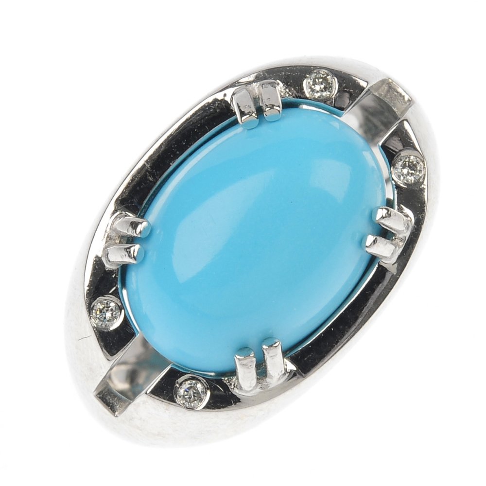 A reconstituted turquoise and diamond ring.