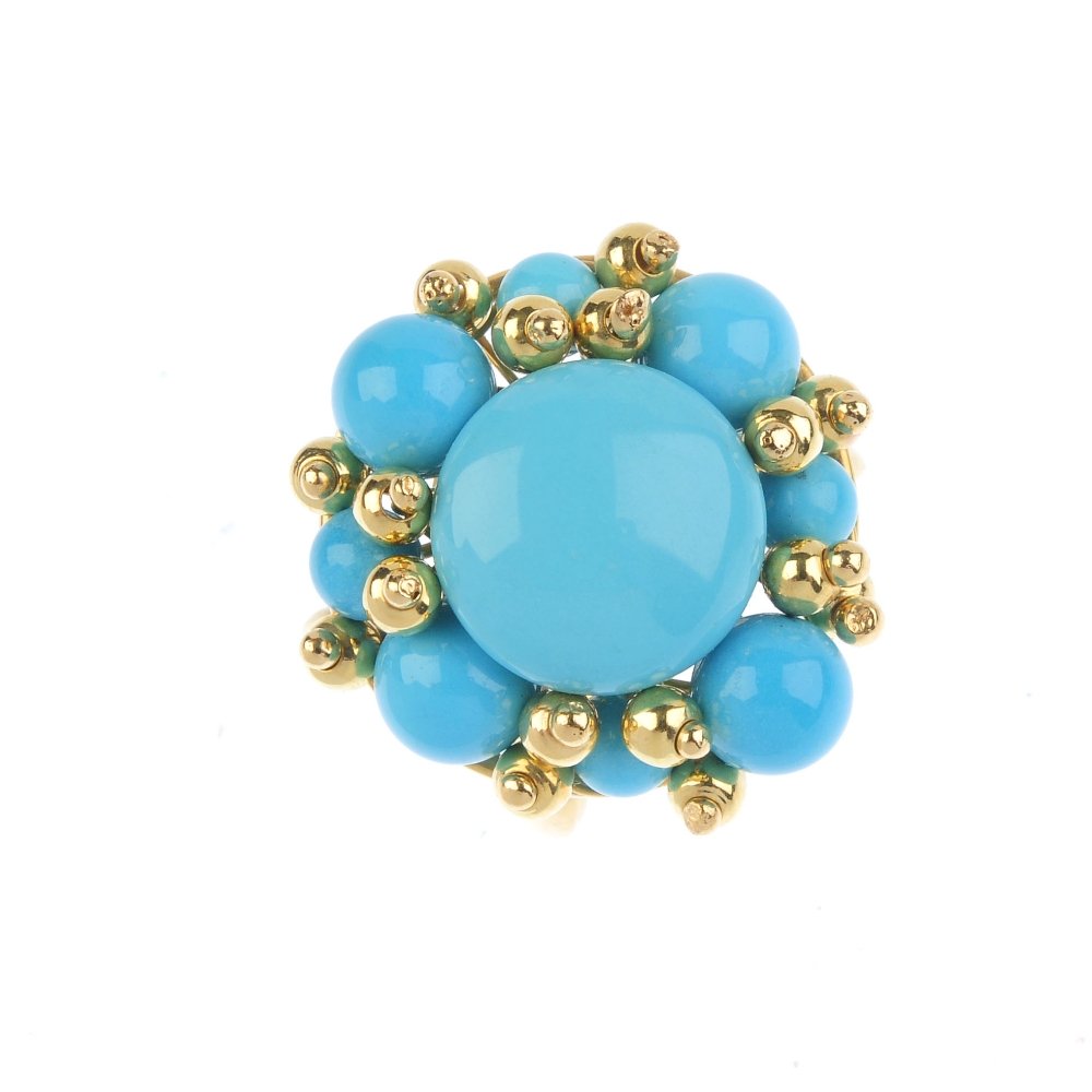 A reconstituted turquoise dress ring. The circular