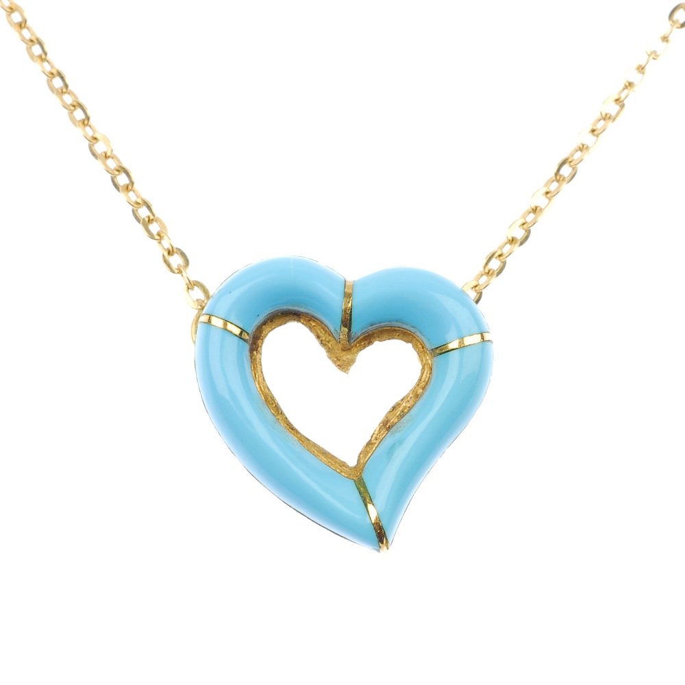 10k Yellow Gold Open Heart Pendant Necklace with Diamonds and SapphiresBidhaus4.2(837)$1005 days Left