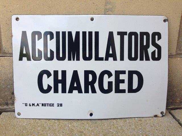 A rectangular enamel sign 'Accumulated Charge', 15 x