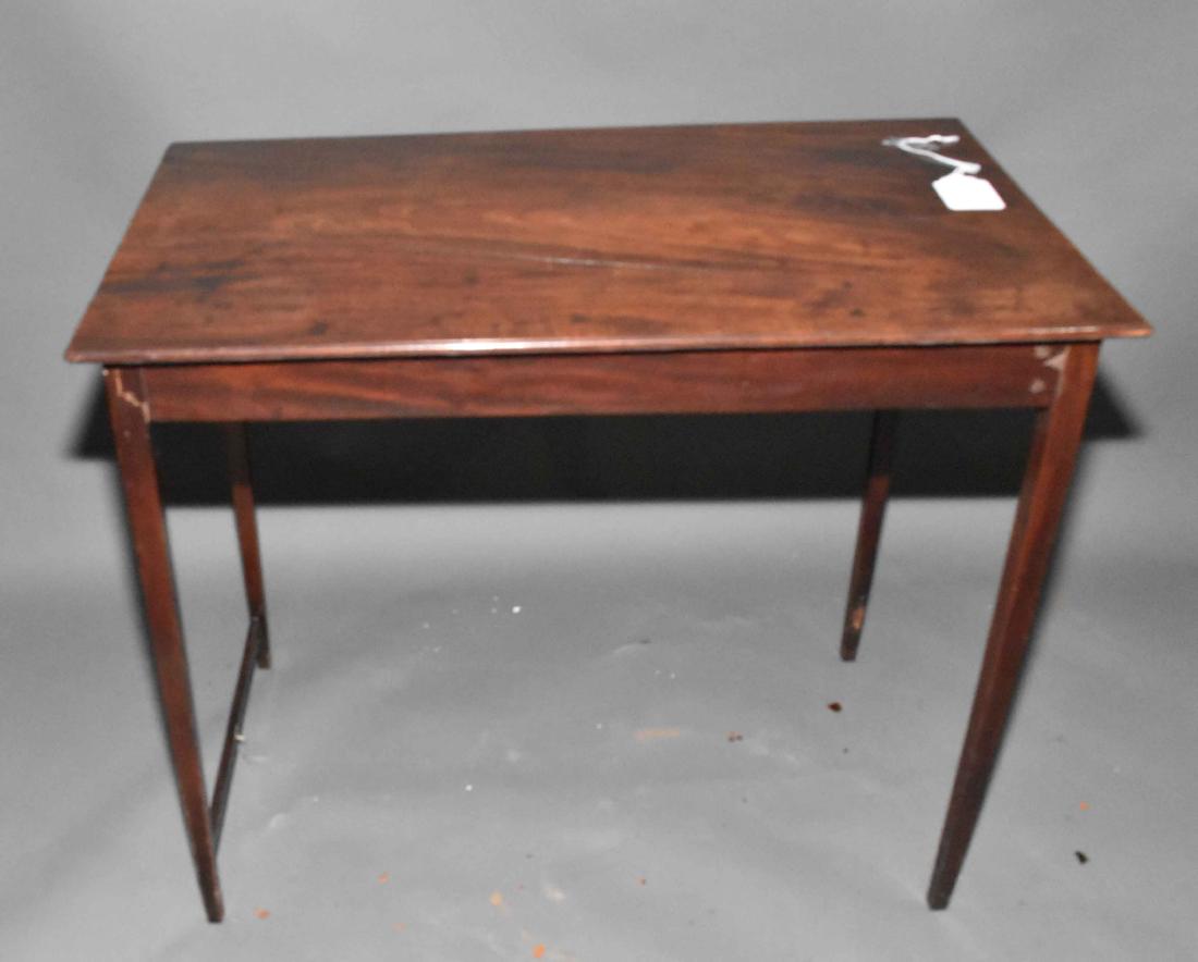 A RECTANGULAR MAHOGANY SIDE TABLE, with plain apron on