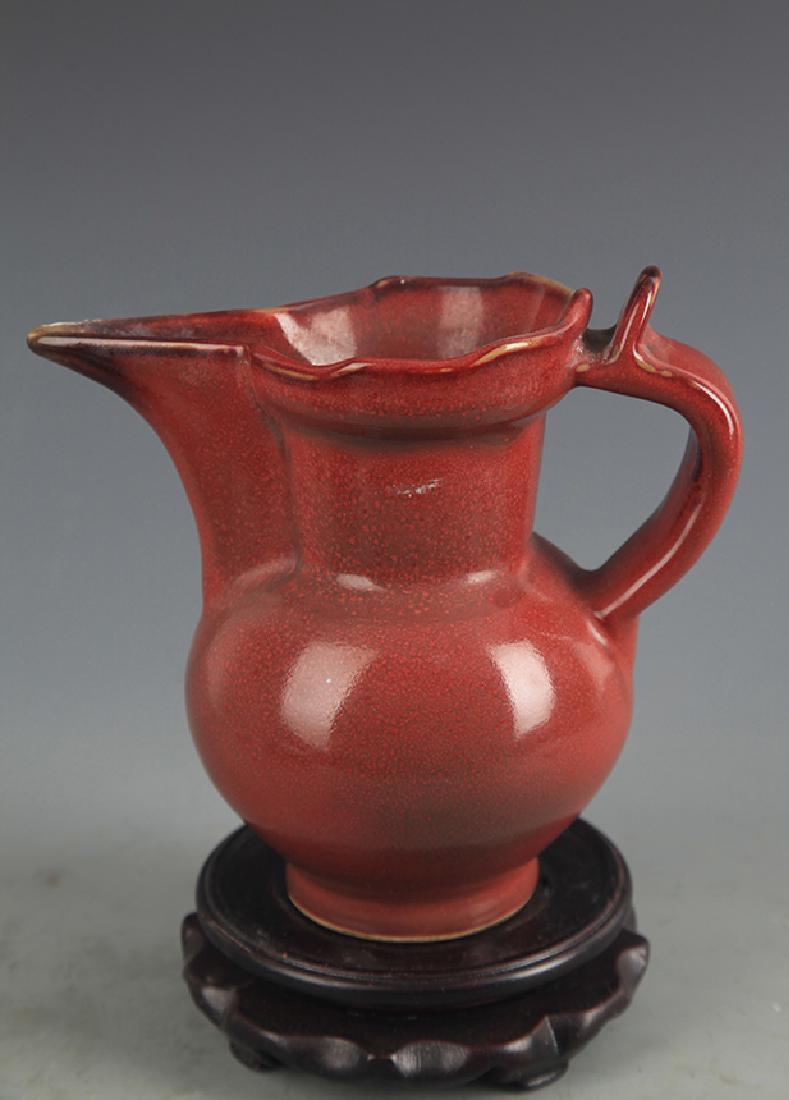A COPPER-RED GLAZED MONK'S CAP EWER