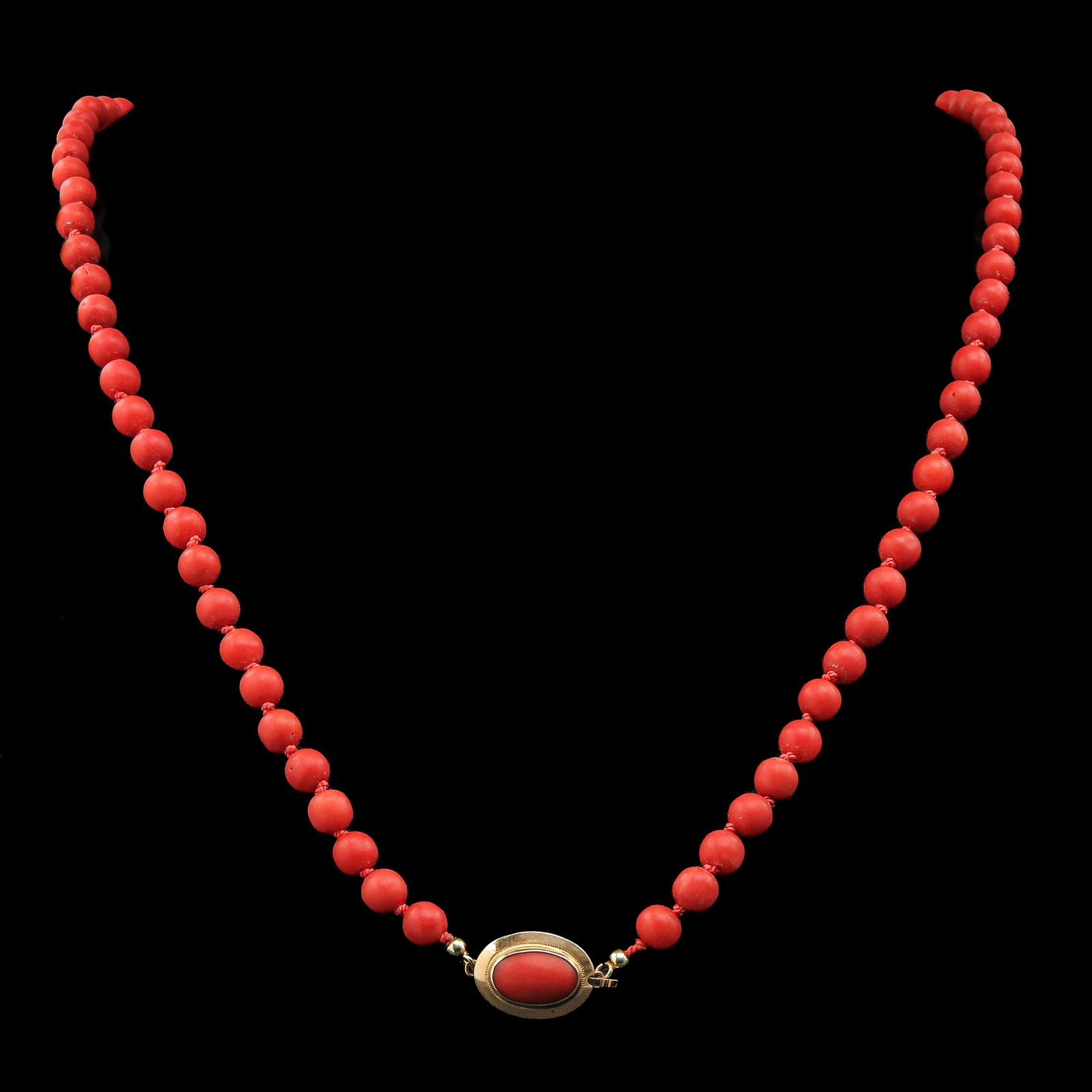 Sold19th Century Red Coral Necklace on 18KG ClaspDiameter of coral is 10 - 14 mm., 558 gram, the largest red coral up for auction.See Sold Price
