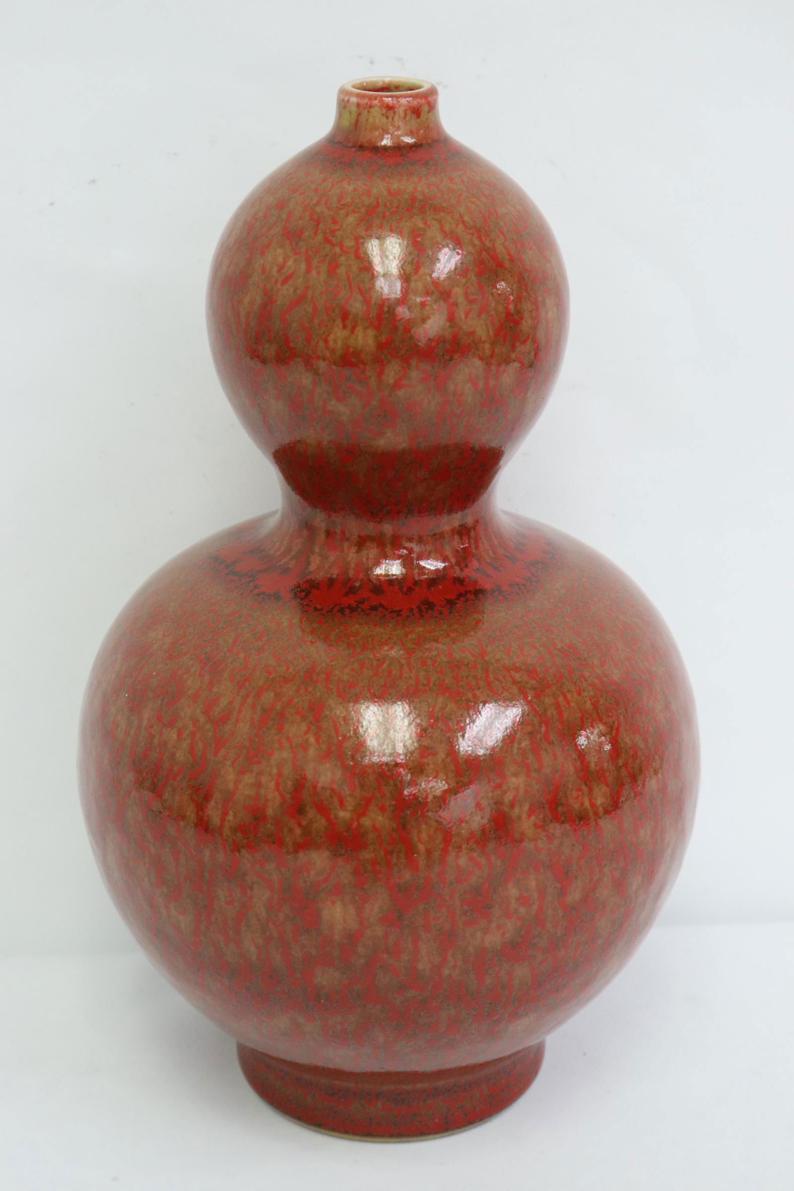 A red glazed porcelain gourd shape vase