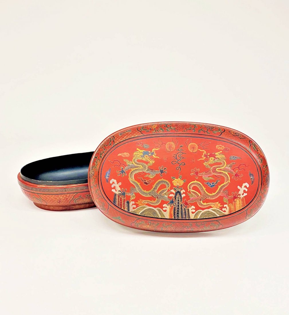 A Chinese Cloisonné Circular Covered 'Dragon' BMar 25, 2026A round box with a red lacquerware double dragon play bead pattern in the Qing DynastyMar 22, 2026A lacquered flat pot painted with seven leopard patterns in the Western Han DynastyMar 22, 2026An Exquisite Carved Red Lacquer Painted Color Auspicious Cloud,Dragon and Phoenix Pattern Cover Box514 Lots AwayOld leather lacquer box with genuine gold dragon pattern.7 hrs LeftA LACQUER BOX WITH ENGRAVED GILT TWIN DRAGONS AND SHOU MEDALLIONMar 28, 2026A FINE CARVED CINNABAR LACQUER DRAGON BOX WITH COVERMar 22, 2026A Exquisite Carved Red Lacquer Character and Story Pattern Dragon Pattern BoxMar 20, 2026An Exquisite Carved Red Lacquer Dragon Pattern Lotus Pattern Box7 days LeftA IRON-RED GLAZED AND GILT COVERED BOX WITH CLOUD, DRAGON, AND BAGUA DESIGN3 days LeftLacquer Food Box with Double Dragons, Qianlong PeriodMar 28, 2026A Huge Carved Red Lacquer Dragon Pattern Cover Box,with an Imperial Poem by Emperor QianlongMar 25, 2026Lacquerware Gold Drawing Dragon and Bat & Shou Pattern Lid BoxMar 19, 2026Made in the Wanli period of the Ming Dynasty, Five-colored Dragon Food Box4 days LeftA RED LACQUER BETEL BOX WITH SCENES FROM THE MAHOSADHA JATAKA BURMA, EARLY 20TH CENTURYAn Elaborate Lacquered Gilded 'Bat& Scrolling Lotus' BoxMar 25, 2026