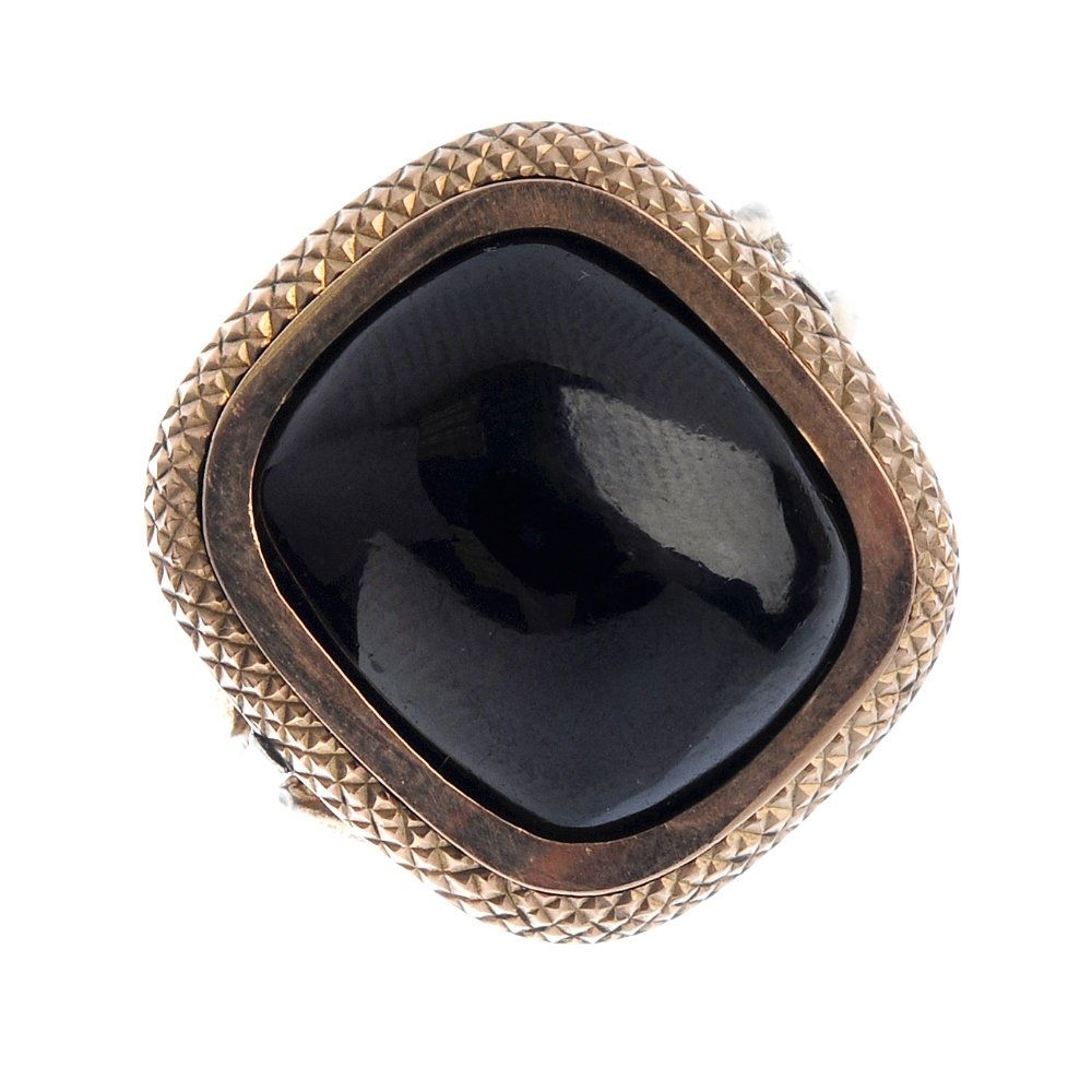 A Red Paste Single Stone Ring. The Cushion Red Paste
