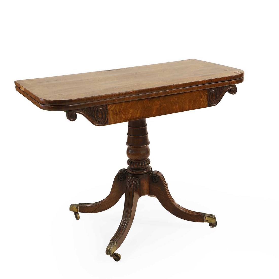A Regency mahogany fold-over card table,