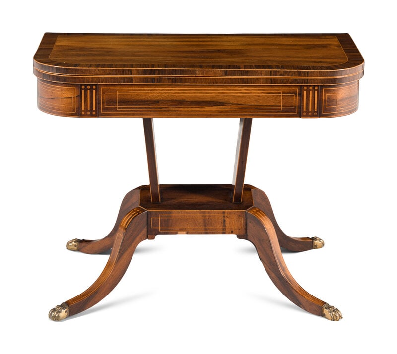 Y A REGENCY MAHOGANY 'CHAMBER' TABLE, IN THE MANNER OF GILLOWS, CIRCA 1815Mar 24, 2026Y A REGENCY ROSEWOOD X FRAME LOW CENTRE TABLE, IN THE MANNER OF GILLOWS, CIRCA 1820Mar 25, 2026Antique Sheraton Games Table Mahogany Birdseye Maple Inlaid C.1840-1860Mar 21, 2026Restored 19th Century Sheraton Mahogany Games Table 36 x 18.5 x 29.5Mar 13, 2026A REGENCY MAHOGANY LIBRARY TABLE, IN THE MANNER OF GILLOWS, CIRCA 1815Mar 24, 2026George III Mahogany Demilune Pier Table5 hrs LeftA REGENCY MAHOGANY, LINE INALID AND EBONISED CENTRE OR LIBRARY TABLE, CIRCA 1820Mar 25, 2026A Federal Mahogany Card Table, Probably Pennsylvania, c. 1810Mar 15, 2026Rosewood Regency Style Drop Leaf Library Table With Two Drawers3 hrs LeftY A REGENCY SATINWOOD AND TULIPWOOD SOFA TABLE, STAMPED 'WILKINSON', CIRCA 1815Mar 24, 2026A REGENCY MAHOGANY AND MARQUETRY SOFA TABLE, CIRCA 1815Mar 24, 2026Hepplewhite Style 19th Century Flame Mahogany Inlaid English Game Table3 days LeftA REGENCY MAHOGANY DRUM LIBRARY TABLE, CIRCA 1820Mar 24, 2026A GEORGE III SATINWOOD, BURR YEW, HAREWOOD AND PARQUETRY DEMI LUNE CARD TABLE, CIRCA 1790Mar 25, 2026A GEORGE III MAHOGANY AND SATINWOOD MARQUETRY CONSOLE TABLE, IN THE MANNER OF INCE & MAYHEWMar 24, 2026A WILLIAM IV MAHOGANY LIBRARY OR WRITING TABLE, CIRCA 1835Mar 25, 2026