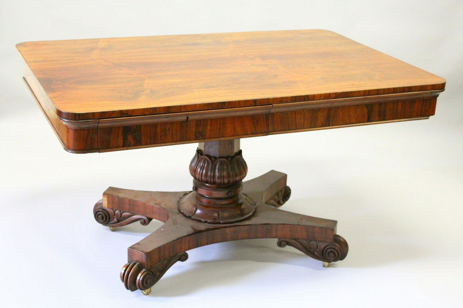 A REGENCY ROSEWOOD LIBRARY TABLE, with rounded
