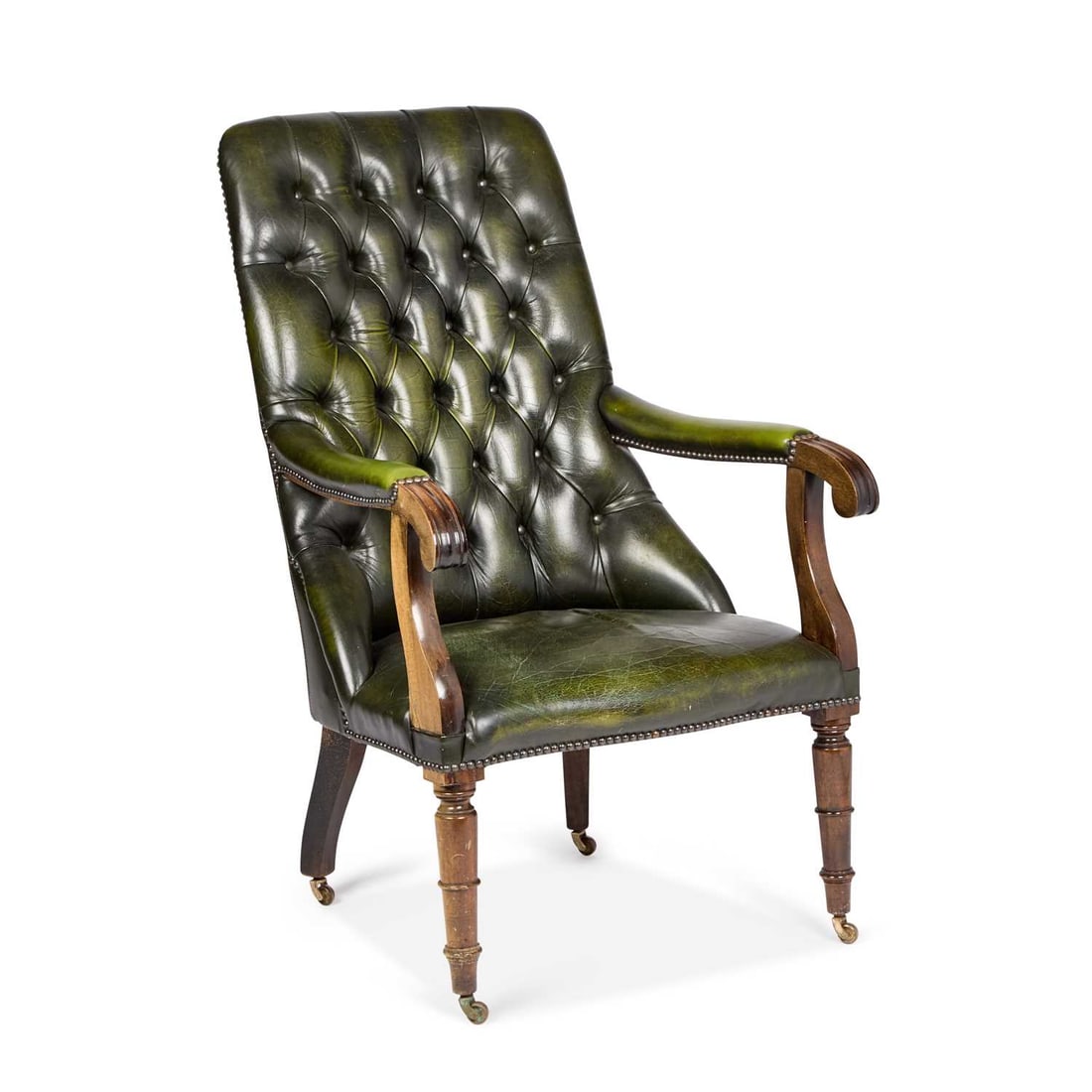 A GEORGE III MAHOGANY, BRASS STUDDED AND GREEN LEATHER UPHOLSTERED WING ARMCHAIR, CIRCA 1780Dreweatts Donnington Priory4.4(34)£800(1 bid)4 days Left