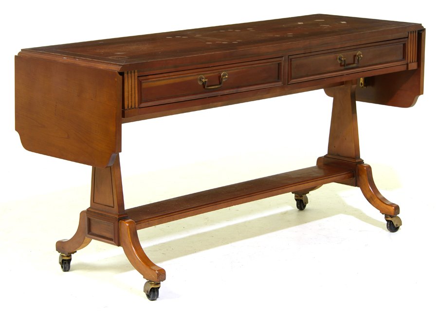 Y A REGENCY ROSEWOOD AND SATINWOOD CROSSBANDED SOFA TABLE, CIRCA 1820Feb 18, 2026Hollywood Regency Drop Leaf Rolling Bar Server with Drawer Storage by Sleigh FurnitureRegency Style Rosewood Drop Leaf Sofa TableMar 05, 2026English Mahogany Regency-Style Sofa Table4 hrs LeftA REGENCY ROSEWOOD AND SATINWOOD-INLAID SOFA TABLE CIRCA 1800Feb 18, 2026Baker Furniture (American) Regency Style Mahogany Drop-Leaf Console Table H 18.25" W 44" Depth 16"Feb 19, 2026Antique Regency Mahogany Drop Leaf Table.3 days LeftA Regency brass mounted rosewood sofa table In the manner of John McLeanRegency Style Tooled Leather Inset Wood Writing DeskFeb 21, 2026Y A GEORGE III ROSEWOOD AND PARTRIDGEWOOD CROSSBANDED SOFA TABLE, ATTRIBUTED TO GILLOWS, CIRCA 1800Feb 18, 2026Late 18th Century Flip Top Queen Anne Console Table4 days LeftAntique Wooden Drop Leaf Table with Elegant Turned Legs1 day LeftCOUNTRY QUEEN ANNE MAPLE DROP-LEAF TABLEFeb 21, 2026Regency Inlaid Mahogany Sofa TableFeb 12, 2026REGENCY STYLE DOUBLE PEDESTAL DINING TABLEFeb 14, 2026Regency Style Mahogany Two-Tier TableMar 26, 2026