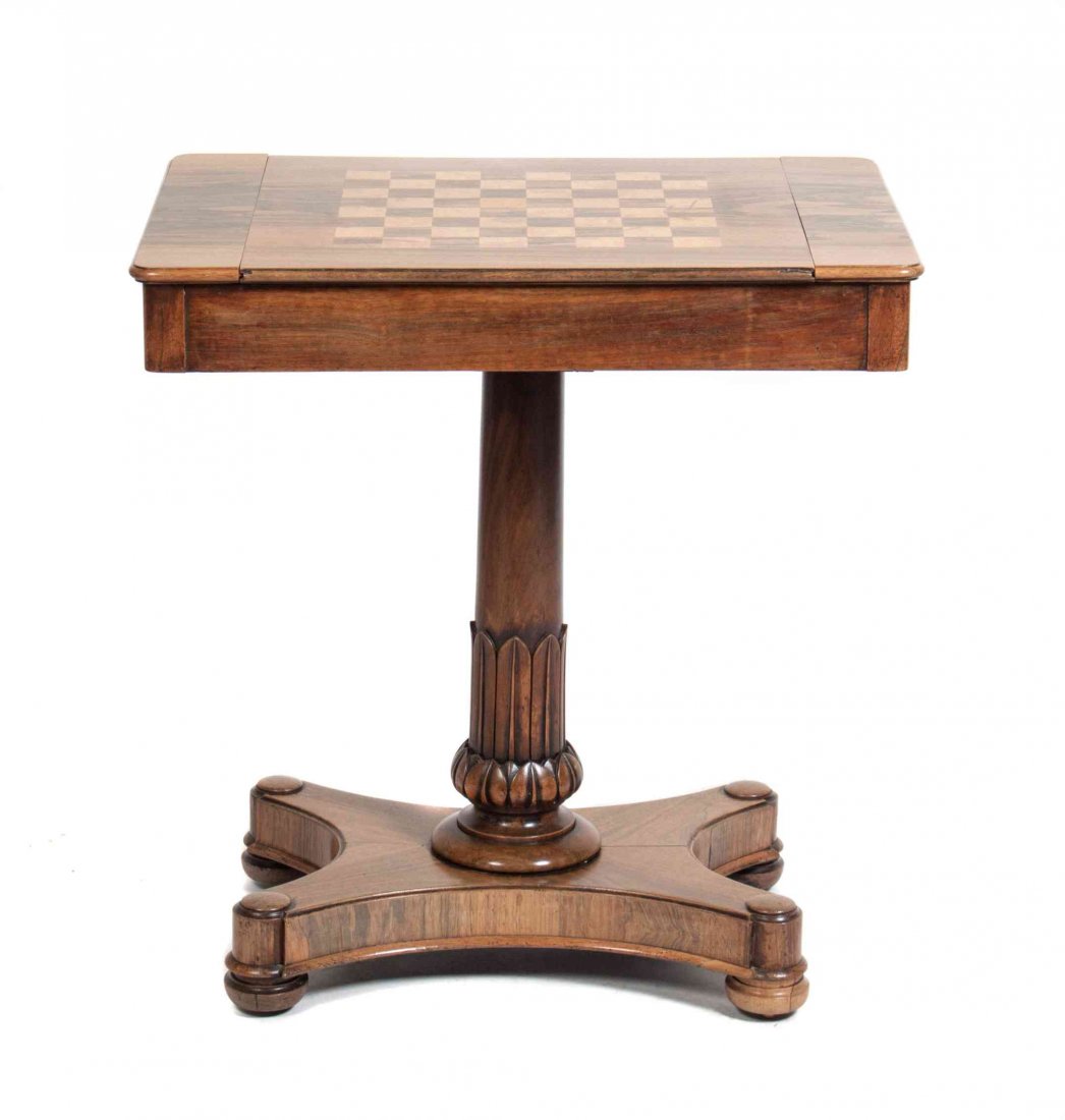Regency Style Double Pedestal Mahogany Dining Table7 days LeftAn Antique Regency Style Drum Table7 days LeftVintage Chippendale Style Carved Mahogany Leather Top Game TableHollywood Regency Ebony Game, Card Table, Louis XVI Style, Bronze MountedMaitland Smith Regency Style Leather Top Game Table1 day LeftAntique George III Game TableMaitland Smith Leather Wrapped Games Table with Reversible Game Board6 days LeftAmerican Classical Mahogany Console / Games TableMar 07, 2026Vintage Regency Smith and Watson Game Table Oxblood Red WoodMar 02, 2026Round Regency Mahogany Center Table with Tooled Leather Top by Maitland SmithFeb 27, 2026Regency Style Rams Head Games Table with Leather TopFeb 27, 2026A Continental Baroque style giltwood games table, composed of antique and later elements6 days LeftLate Regency Rosewood Library TableMar 15, 2026Sheraton Mahogany Card Table C1830Mar 07, 2026American Classical Brass Inlaid Mahogany Fold Over Games TableMar 16, 2026Hepplewhite Style 19th Century Flame Mahogany Inlaid English Game Table3 days Left