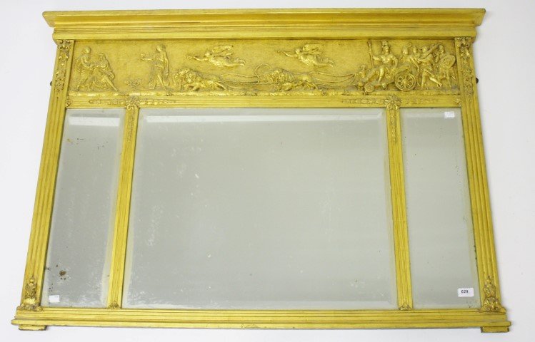 A REGENCY STYLE GILT THREE COMPARTMENT OVERMANTEL,
