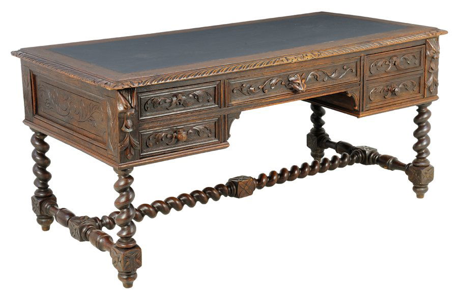 Queen Anne Style Lowboy / Server & Display Vitrine4 days LeftRenaissance Wood and Wrought Iron Trestle TableFrench Louis XV Style Mahogany Writing Table, 20th c., H.- 29 1/4 in., W.- 41 1/4 in., D.- 19 3/43 days LeftA MAHOGANY WRITING-TABLE, 20TH CENTURY, OF GEORGE II STYLE7 days LeftHandsome British George III Carved Mahogany Dressing Table or Hall Table4 days LeftA Louis XVI style brass mounted mahogany bureau plat, 19th century22 hrs LeftLouis XV Rosewood and Bronze Mounted Bureau PlatMar 07, 2026Jacobean Style Desk with Secret Drawer362 Lots AwayExquisite Mahogany Tudor Partners Desk with Carved Claw Feet3 days LeftA Dutch Baroque style marquetry table7 days LeftItalian Renaissance Carved Walnut Refectory Table, Venice2 days LeftHenredon Mahogany Inlaid Coffee Table3 days LeftAmerican Empire Flame Mahogany Sofa Table, Carved Acanthus & Paws, C1840Mar 07, 202619th Century Wooden Writing Table with Leather Top and Decorative Trim5 days LeftFrench Empire Mahogany Bureau Plat, 19th C.Apr 07, 2026attrib To R.J Horner Carved Winged Griffin Mahogany DeskMar 07, 2026