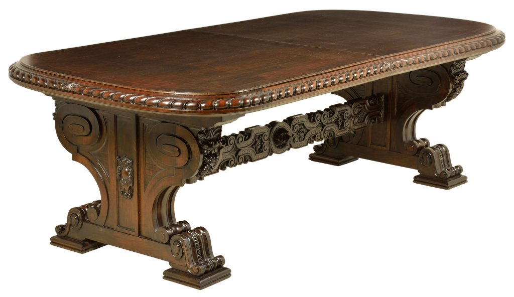 A RENAISSANCE REVIVAL MAHOGANY DINING TABLE