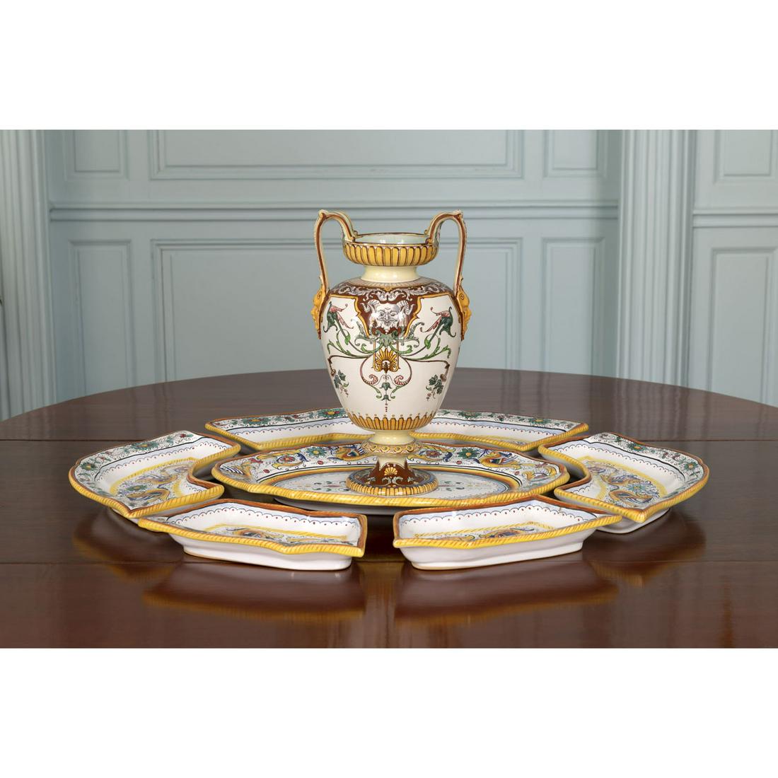 A Renaissance style cream ware center table, marked