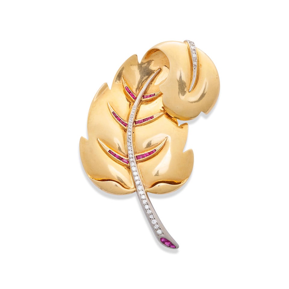 AN 18K GOLD AND DIAMOND LEAF BROOCHBrooch - 18 kt. Yellow gold, 18K Gold, Ruby & Diamond Flower BroochMar 14, 2026SPRITZER & FURMAN DIAMOND BROOCH RUBY 18K GOLD LEAF PETALS FLOWER PINJul 13, 2025VINTAGE DIAMOND RIBBON BROOCH PIN 14K3 days LeftVINTAGE SAPPHIRE RUBY FLOWER BROOCH PIN4 days Left14K Rose and Yellow Gold Circle Brooch, Rubies & Citrine 1960, Dia. 1.7" 11.2 g 1 PCMar 19, 202614kt Yellow Gold Brooch Flower Basket, Rubies 1960, 15.2 g 1 PCMar 19, 2026French 14K Rose Gold Platinum Ruby Diamond Flower Brooch1034 Lots AwayFrench 14K Rose Gold Platinum Ruby Diamond Flower BroochMar 20, 2026JEWELRY 18K YELLOW GOLD BROOCH AKOYAPEARL DIAMOND3 days LeftTRABERT & HOEFFER & MAUBOUSSIN 18K Burma no Heat Ruby and Diamond BroochMar 12, 2026Gold Diamond 0.24Ct Leaf Pendant 18K 750 YellowMar 14, 2026TRABERT & HOEFFER MAUBOUSSIN: A RETRO 14K GOLD, RUBY, AND DIAMOND 'REFLECTION' BROOCH1.53 Ctw SI2/SI1 Diamond Prong Set 14k Yellow Gold Christmas theme RingApr 06, 2026Retro 14kt Rose Gold Ring with Rubies & DiamondsMar 12, 2026Elegant Solid Gold 1ctw Diamond Multi Leaf Brooch Pin2 days Left
