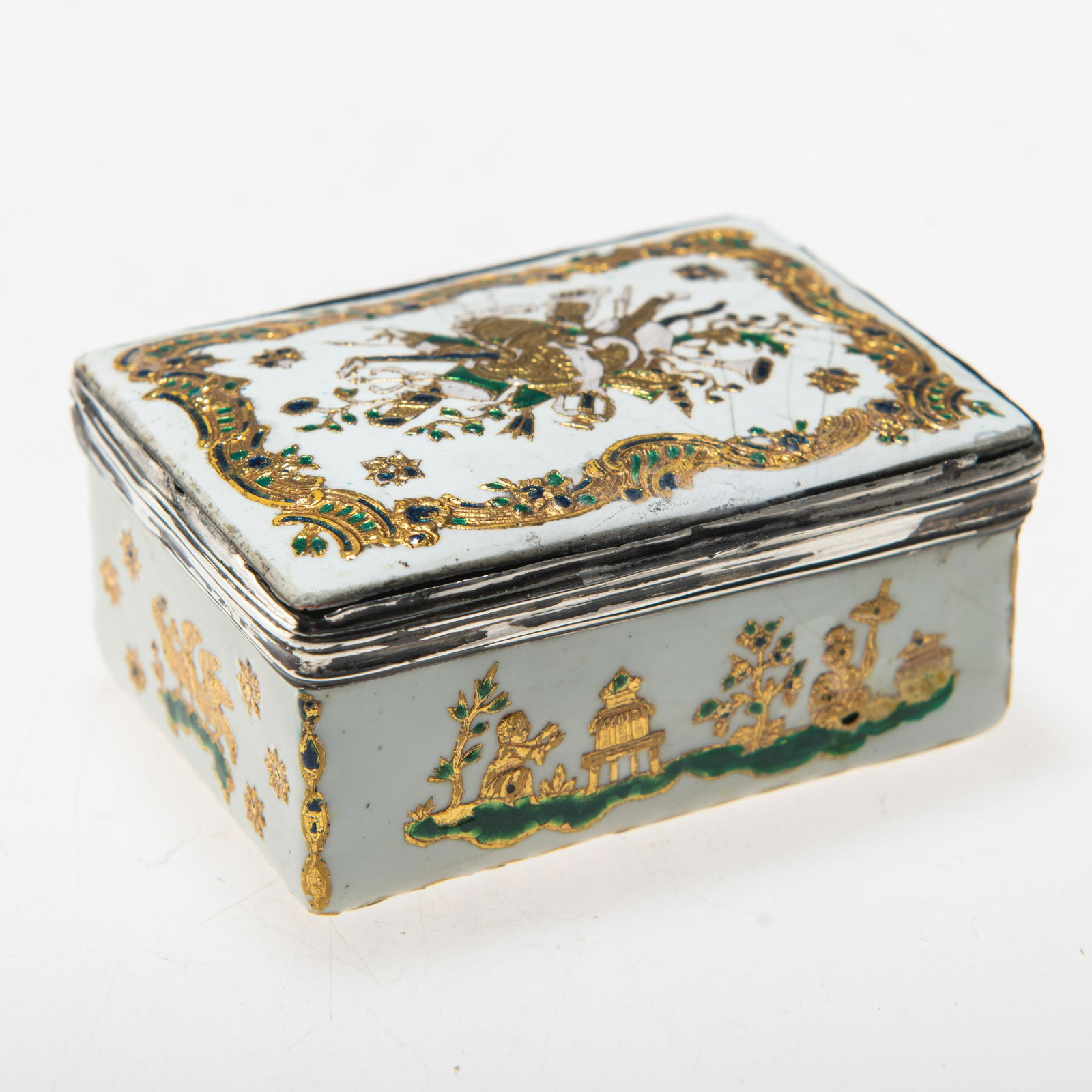 A GOLD-MOUNTED MEISSEN PORCELAIN RECTANGULAR TOBACCO-BOX AND TAMPER PROBABLY MID-18TH CENTURYChristie'sPreview Only2 days Left