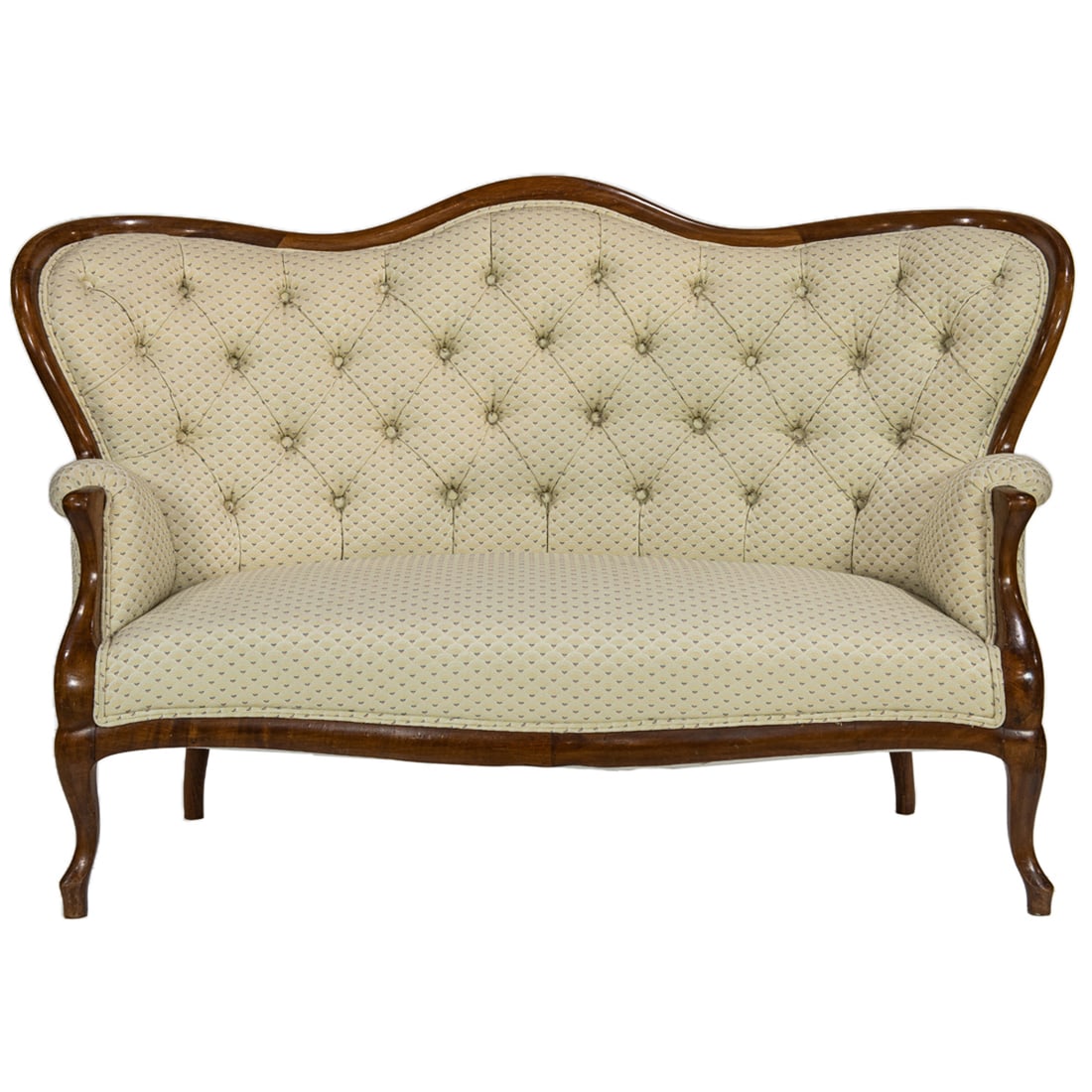 A Rococo Revival tufted settee with serpentine back rail