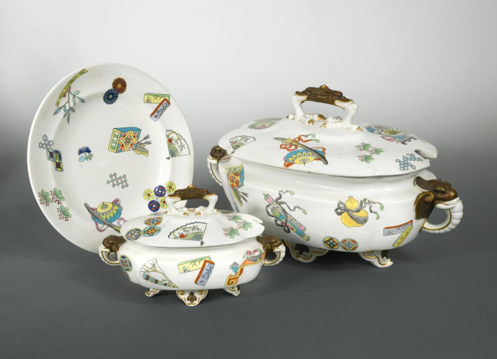 Lot English Porcelains Incl Urn and Dessert Plates, set 95 days LeftNorthwood EAPG Opaque Custard Glass Berry Bowl, Louis XV Bowl and Footed Spooner w/ Banana BoatMar 30, 2026(5) CONTINENTAL PORCELAIN TABLEWARE, ROYAL VIENNA & SEVRES STYLEMar 27, 202615 Porcelain Tablewares Incl. Mottaheda & CoalportMar 26, 2026Royal Worcester Grosvenor White & Gold Part Dinner ServiceA Herend Rothschild Bird Porcelain Tureen and a Group of Continental Porcelain Articles1 day LeftA Collection of Herend Rothschild Bird Porcelain Articles1 day Left3-piece writing set with sculptural floral decoration, Meissen 19th century4 days LeftTwo Asian Porcelain TureensMar 25, 2026Herend Porcelain Tableware, 5 Pcs.May 07, 2026Herend Hungary Rothschild Bird Porcelain Tea Set2 days LeftCollection of Eighteen Japanese Arita Porcelain Tablewares4 days Left9 Service Parts and Table Decoration - Flower Painting, Meissen after 19344 days Left1820-1830 Ridgway Porcelain Dolphin Fruit Coolers Covers & Liners - A PairA famille rose teapot with floral and bird design, bearing the mark of the Qianlong Emperor of the9 hrs LeftA Pair of Chinese Export Porcelain Tureens and Two Famille Rose Porcelain Platters1 day Left
