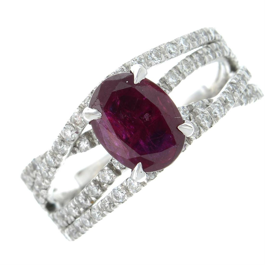 A ruby and brilliant-cut diamond dress ring.