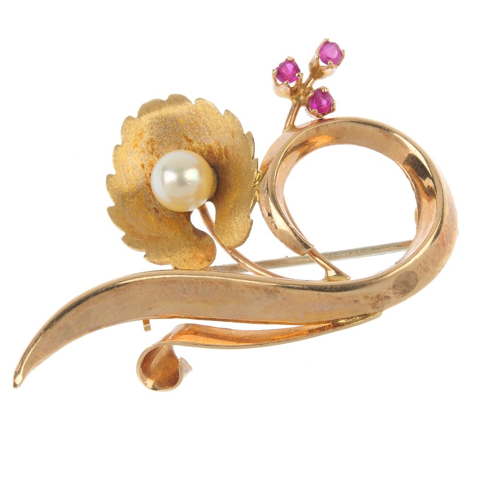 Vintage 1950's 1960's Pearl Ruby Flower Rose Brooch Pin 14K Yellow Gold 13.51 GrChairish Auctions4.5(10.3k)$600