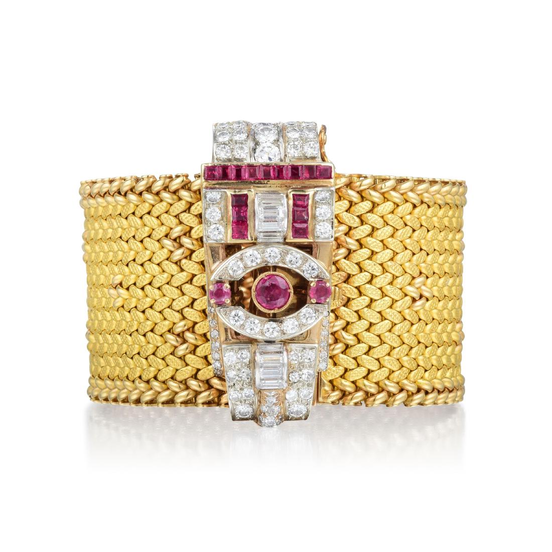 A ruby, diamond and 18K yellow gold bracelet,length approximately 7in (17.75cm); width .5in (14mm)2 days Left18 kt. Exclusive 18K Yellow Gold 5.20ct Ruby and 7.02ct Diamond Hinged Bracelet, Yellow gold -Mar 14, 2026Stunning 18k Yellow Gold Diamond Ruby Panther Bracelet 5 Row FlexMar 04, 2026Wide Gold, Platinum, Diamond and Synthetic Ruby Buckle Slide Bracelet2 days LeftA Channel Set Ruby & Diamond Bracelet in 14K2 days LeftA diamond and 18K yellow gold bracelet,length approximately 7in (17.75cm); width .5in (12.5mm)2 days Left18K Gold Diamond Ruby Bangle Bracelet 237 Diamonds 234 RubiesMar 06, 202616.52 ctw Ruby Tennis Bracelet 14K Yellow Gold Bracelets - CertifiedMar 07, 202618 kt. Yellow gold, 18K Yellow Gold 2.00ct Diamond and Ruby Bracelet Diamond (Natural) - RubyMar 14, 202618K Yellow Gold Tennis Bracelet with Diamonds Rubies Emeralds 7 InchMar 04, 202616.52 ctw Ruby Tennis Bracelet 14K Yellow Gold Bracelets - CertifiedMar 21, 2026Vintage 18k Gold 3 Row Beaded Wrap Bracelet with Ruby Sapphire and Diamonds1 day Left14k Yellow Gold 29.67ct Ruby 1.64ct Diamond Bracelet2 days LeftEtruscan Style 18k Yellow Gold Triple Row Ruby Bracelet5 days LeftVintage 18k Gold 3 Row Beaded Wrap Bracelet with Ruby Sapphire and Diamonds6 days Left14k Yellow Gold 29.67ct Ruby 1.64ct Diamond Bracelet5 days Left