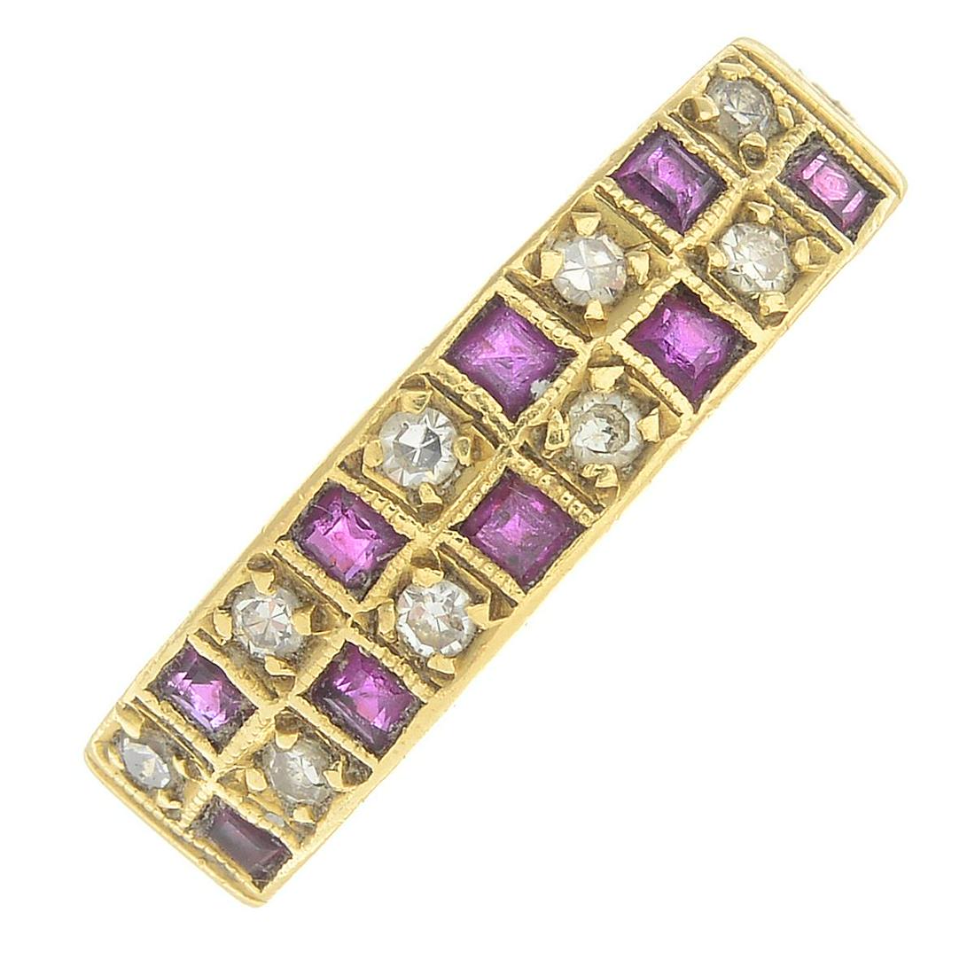 A ruby and diamond chequerboard ring.Estimated total