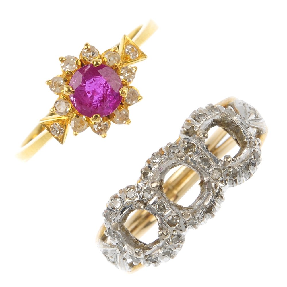 A ruby and diamond cluster ring and a diamond ring