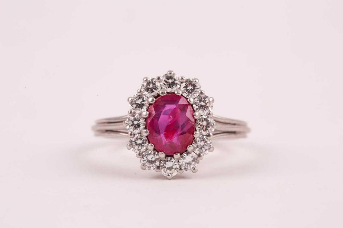 Oval Ruby Diamond Halo Cocktail Statement Ring 18K White Gold, 2.75 CTWChairish Auctions4.5(10.3k)$1,400