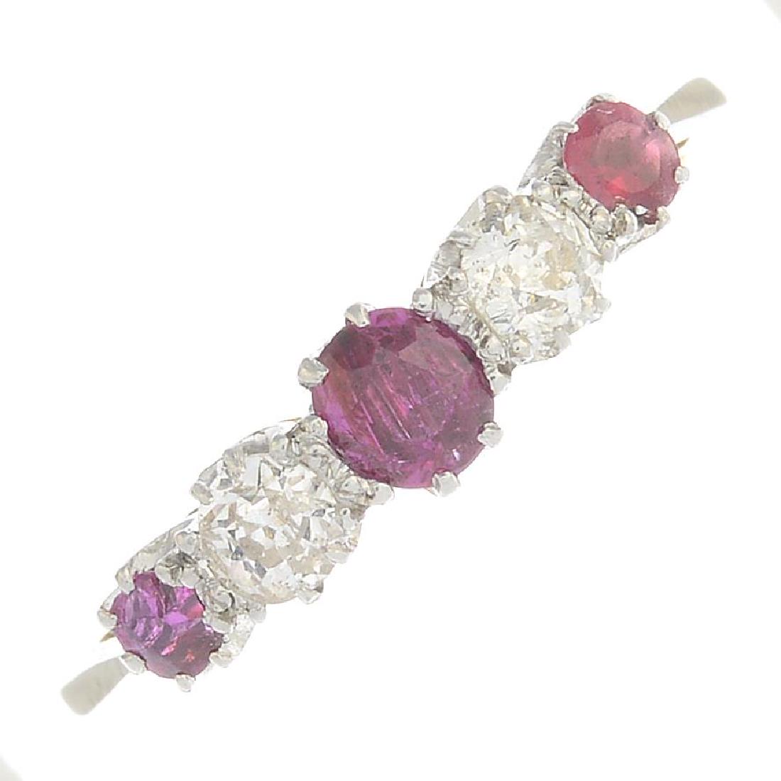 A ruby and diamond five-stone ring. Designed as a