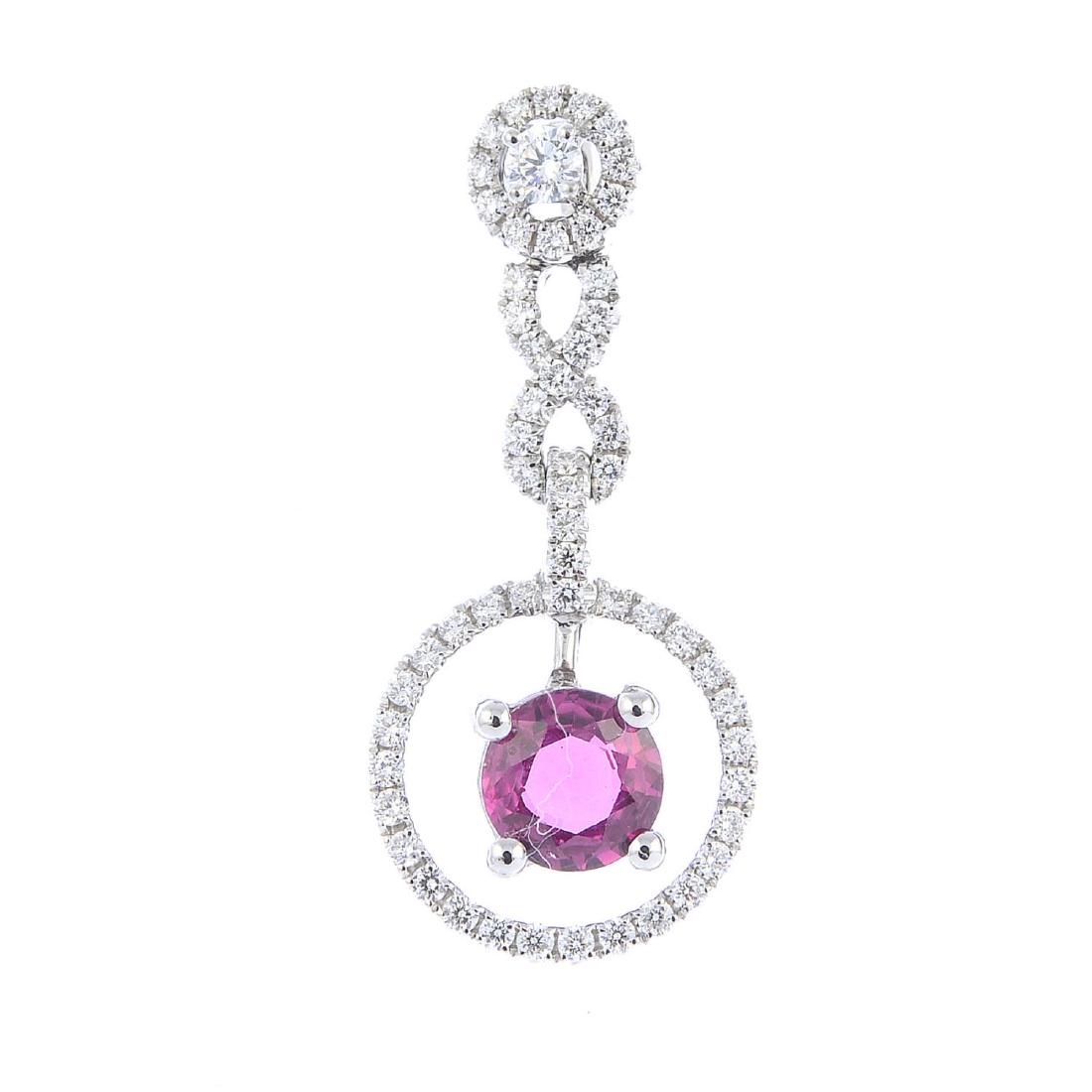 A ruby and diamond pendant. The circular-shape ruby