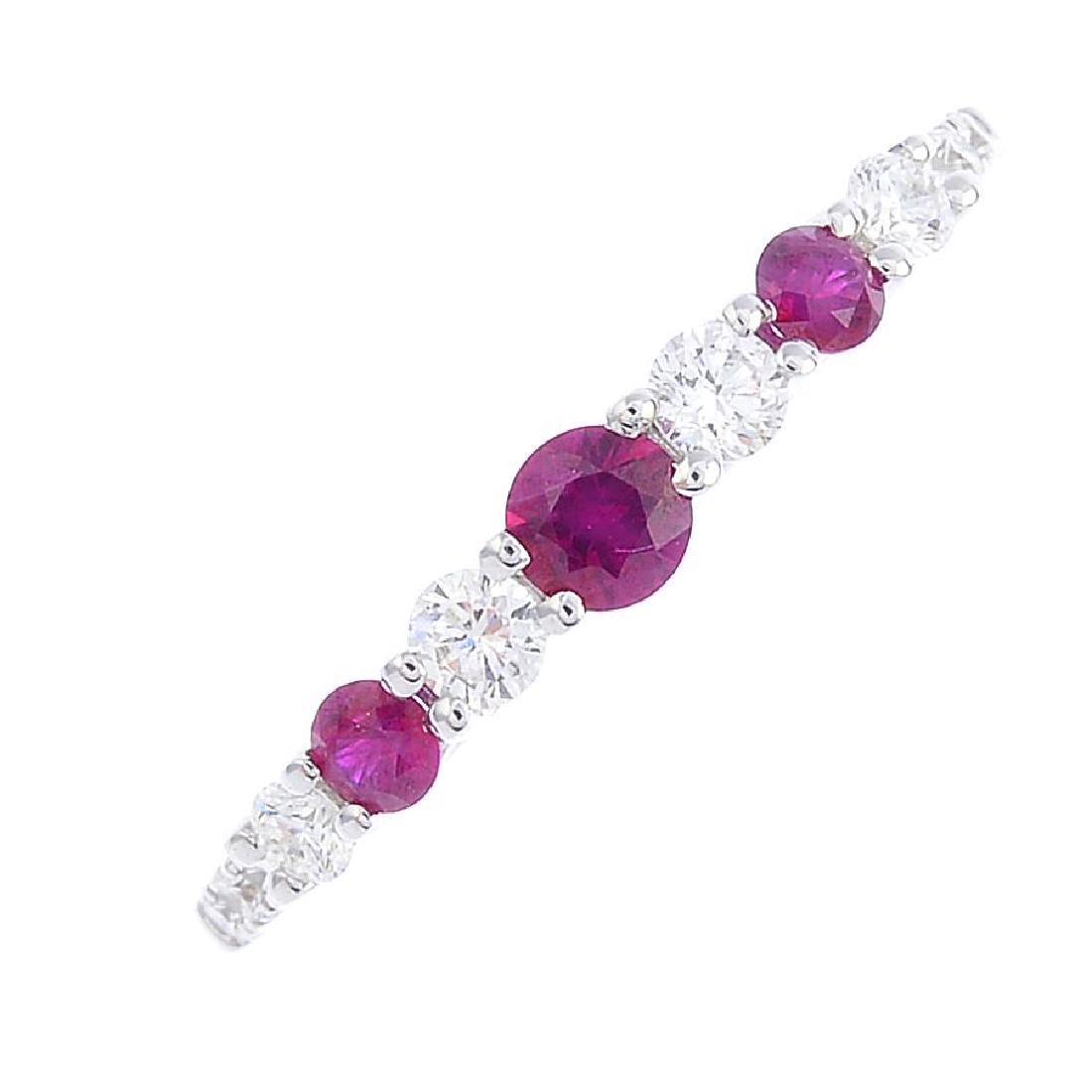 A ruby and diamond ring. The graduated and alternating