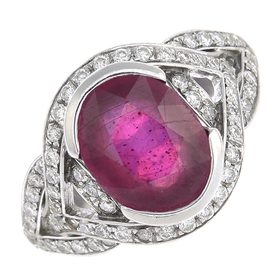 A ruby and diamond ring.One diamond deficient Estimated