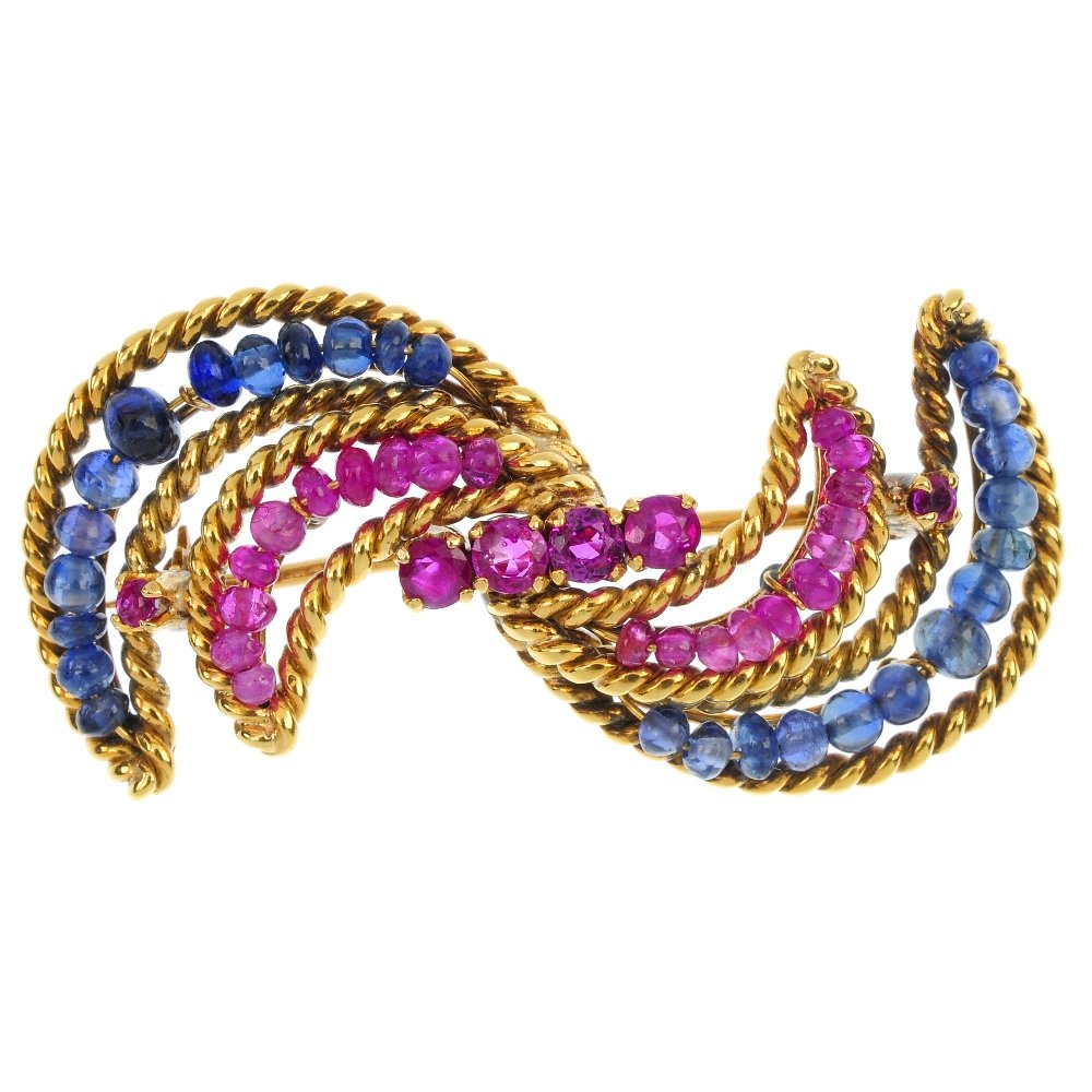 A ruby and sapphire brooch.