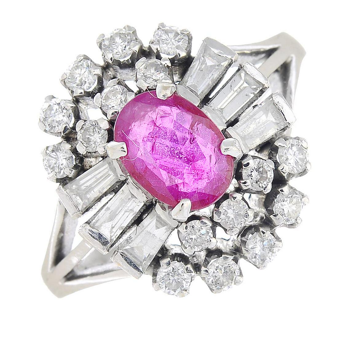 A ruby and vari-cut diamond cluster ring.Ruby
