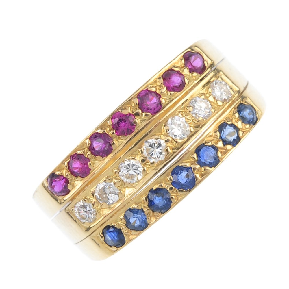 A RUBY AND DIAMOND DRESS RING * three oval-shaped rubies * brilliant and baguette-cut diamonds,Adam's Auctioneers4.3(12)€6002 days Left