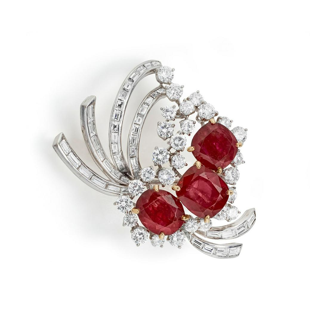 A Ruby, Diamond, and White Gold Brooch