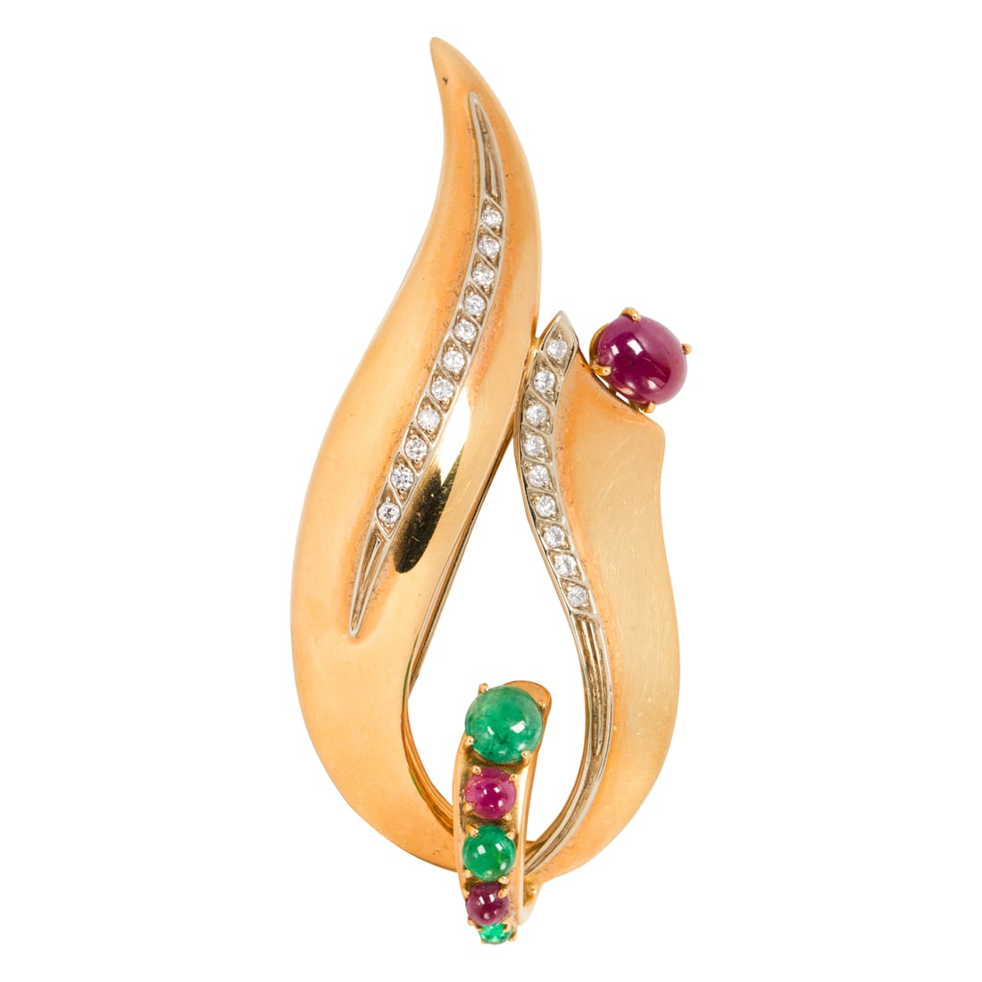 A ruby, emerald, diamond, and 18k gold brooch
