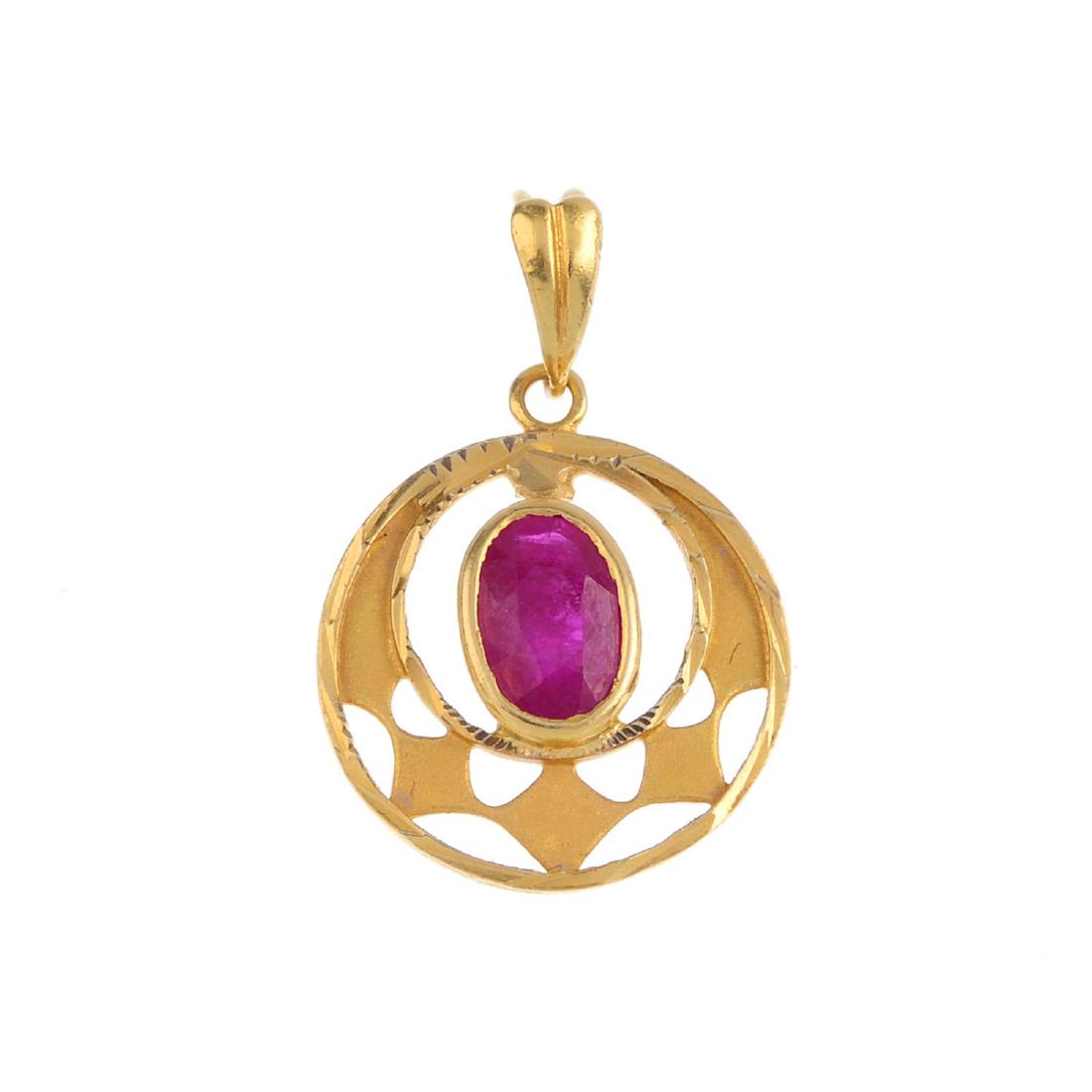 Vintage Oval Simulated Ruby CZ Halo Pendant Necklace 18K Yellow Gold, 5.47 GramsChairish Auctions4.5(10.3k)$550