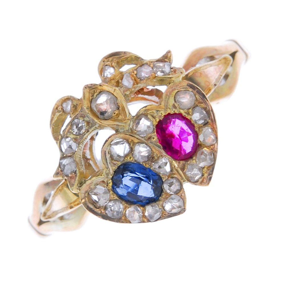 A ruby, sapphire and diamond dress ring.
