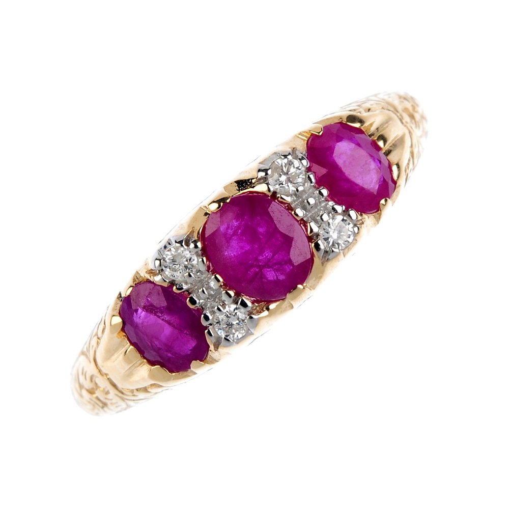 A RUBY AND DIAMOND DRESS RING * three oval-shaped rubies * brilliant and baguette-cut diamonds,Adam's Auctioneers4.3(12)€6008 hrs Left