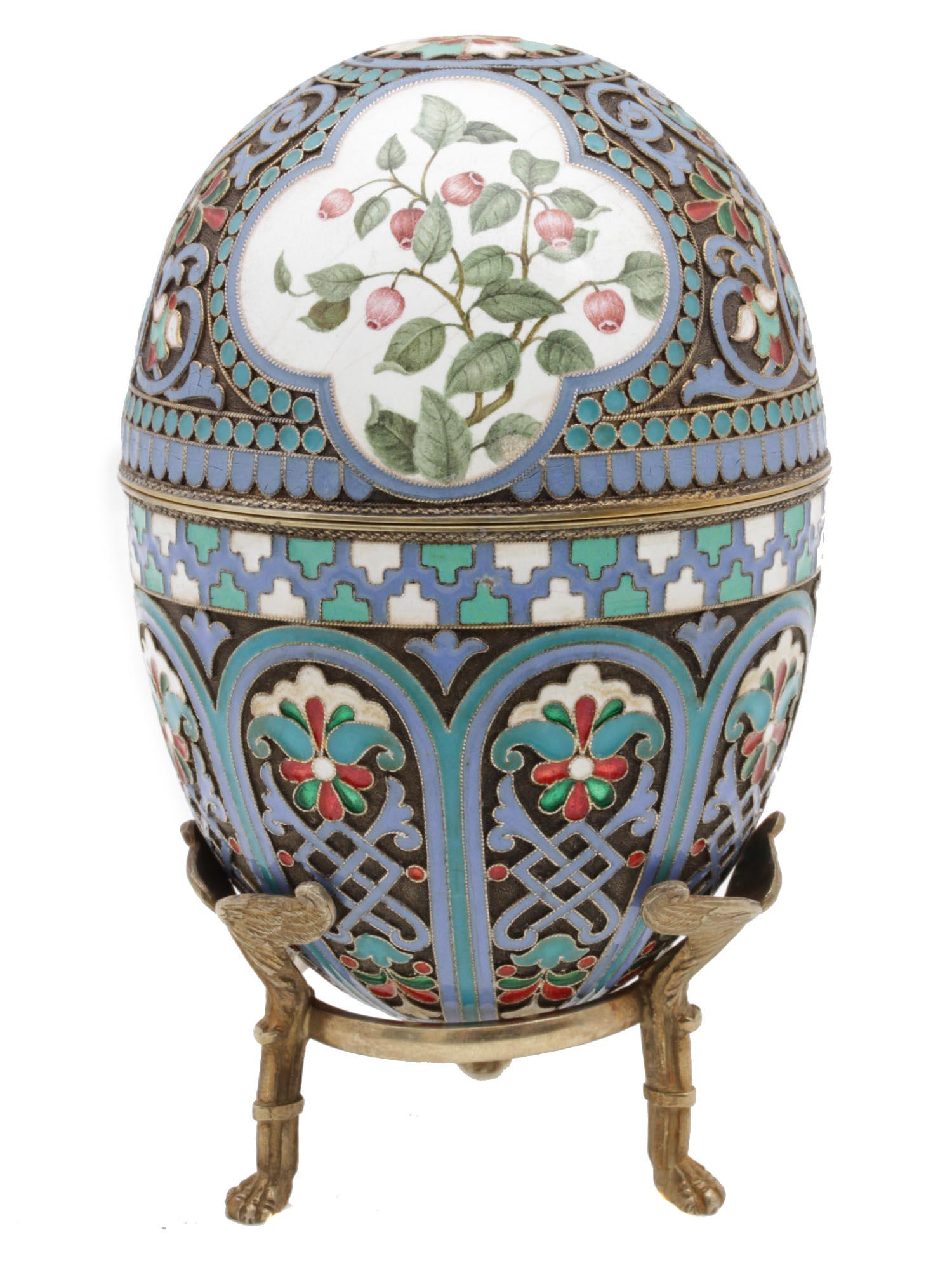 A RUSSIAN GILT SILVER AND ENAMEL EGG