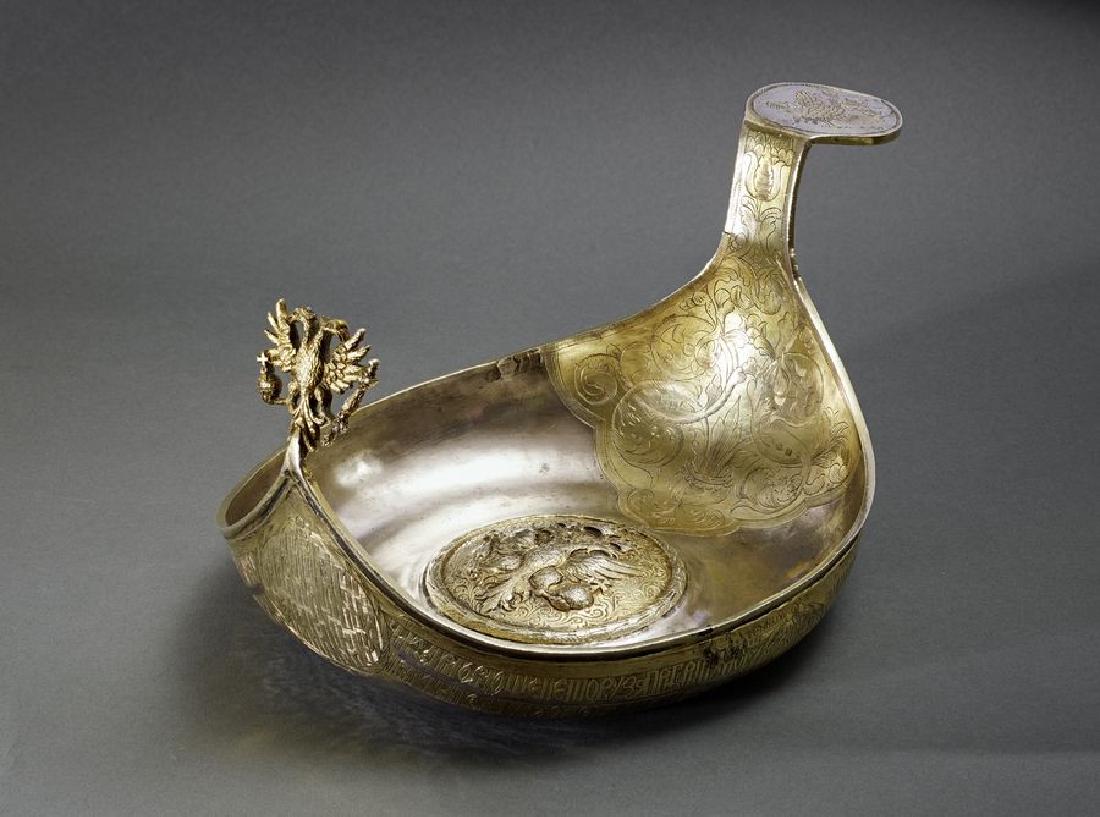 A Russian Imperial parcel-gilt silver kovsh. Present