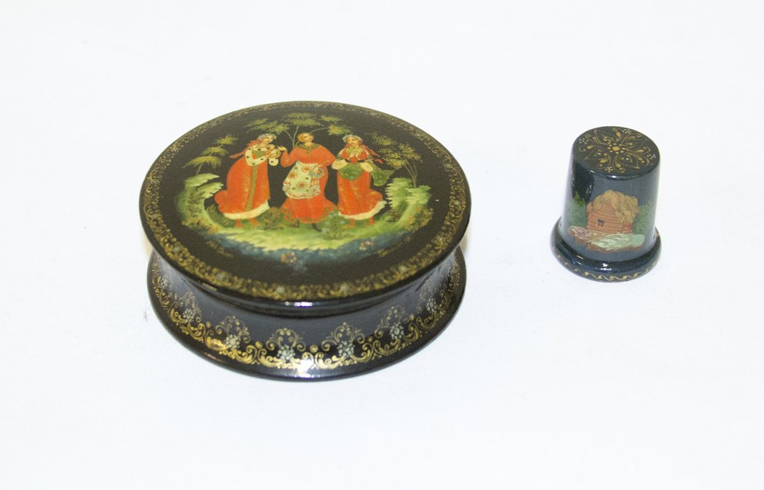 A Russian Lacquer Patch Box, Diameter of box 2 5/8 inch