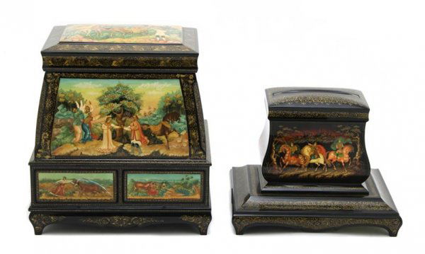 A Russian Lacquer Table Casket And Cigarette Dispenser,